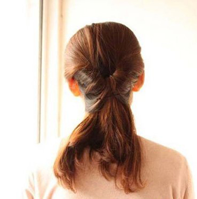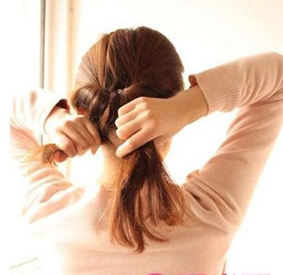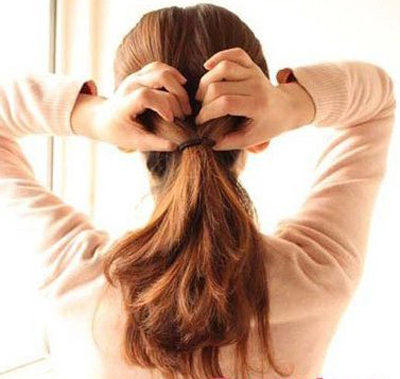 Bước 2: Sử dụng chun buộc một nửa phần tóc theo kiểu đuôi ngựa. Tuy nhiên bạn nên buộc lỏng tay.